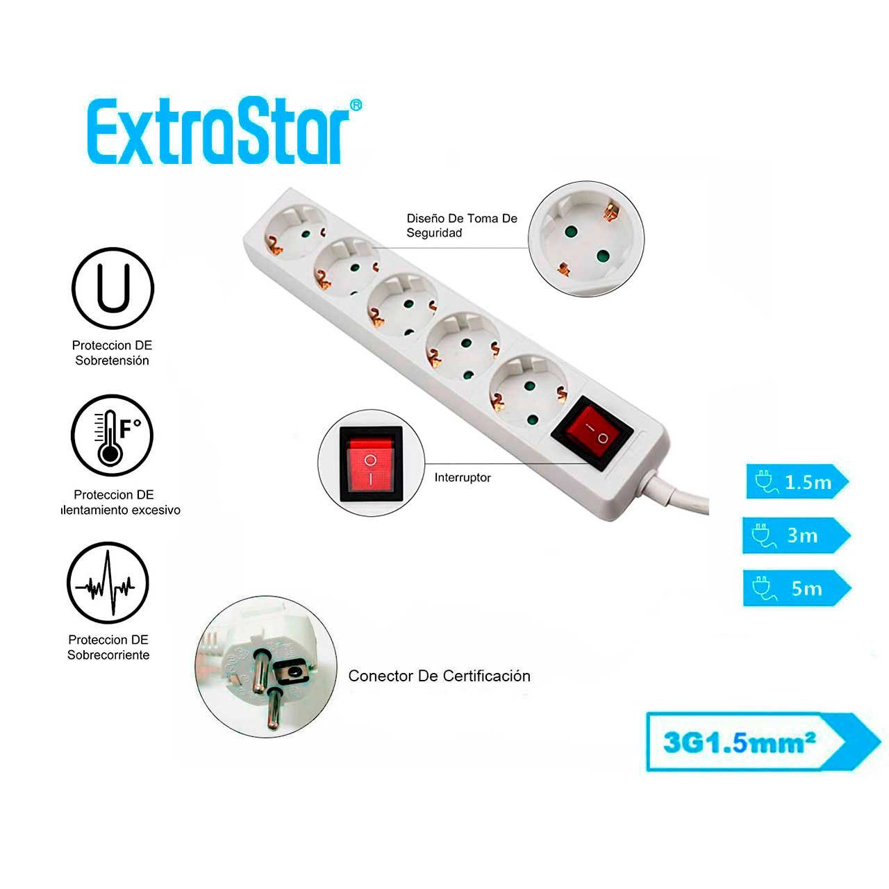 Este alargador está diseñado pensando en tus necesidades diarias. Su diseño compacto permite colocarlo en cualquier espacio sin que sea estorboso. Con cinco agujeros, tendrás la capacidad de conectar desde electrodomésticos hasta dispositivos electrónicos como computadoras, cargadores o lámparas. Además, el interruptor incluido da un control total sobre el flujo de energía, ayudándote a evitar desperdicio innecesario de electricidad.